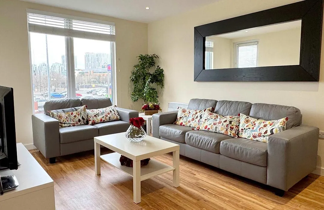 Modern 2-Bed City Living With Private Balcony Manchester apartment is just a 6-minute stroll from Ordsall Hall Museum and includes a fitness studio. Wi-Fi is provided for both business and leisure activities.